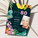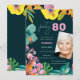 Cette invitation de fête d'anniversaire 80 ans élégante présente des fleurs tropicales, des éléments botaniques élégants et un fond sombre sophistiqué. Parfait pour une célébration d'anniversaire estivale, une fête d'anniversaire tropicale ou une soirée élégante. Œuvre originale de Caroline Bonne Müller