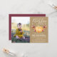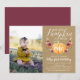 Tombent amoureux de ces adorables invitations d'anniversaire rustiques pour enfants avec une photo préférée sur le côté gauche. Le design présente une citrouille à l'aquarelle orange ornée de fleurs bordeaux, roses et orange et de feuillage vert sur un fond kraft. "Notre petite citrouille grandit" apparaît en haut en lettrage calligraphié chic, avec l'âge de votre enfant inscrit sur la citrouille. L'exemple montré est pour un premier anniversaire. Personnalisez avec les détails de votre fête d'anniversaire ci-dessous en lettrage blanc.