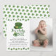 Célébrez le premier anniversaire de votre petit bout en beauté avec notre invitation de fête d'anniversaire Sweet Lucky One ! Avec la charmante phrase "Il a de la chance" une photo et de beaux trèfles aquarelles de couleur verte, cette invitation est parfaite pour toute célébration autour de la Saint-Patrick.