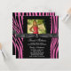 Invitation de fête d'anniversaire de seize ans avec zèbre rose vif et noeud noir, photo de zèbre rose vif.