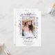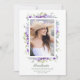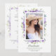 Invitation de diplômé avec des fleurs et des branches aux tons violets.