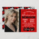Invitation Photo de graduation Red & Black Pawprint