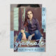 Chic 2 modèle de graduation verticale photo superposé avec des accents dans une palette sophistiquée noir et bleu oeuf rouge clair. L’avant présente une typographie et une image chic de pinceau "diplômé", avec le nom et l’année de graduation de la diplômée. Au dos se trouve une deuxième photo et les détails du parti. #gradparty #bound #graduationparty #classof2019