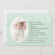 Un joli auvent de fleurs blanches surplombe un arrière - plan vert tendre. La fenêtre ovale tient la photo de votre bébé. C'est une invitation polyvalente qui peut être utilisée pour n'importe quelle occasion. La croix blanche peut être éliminée, traînée à n'importe quelle position, rendue plus grande ou plus petite.