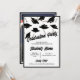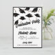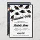 Une invitation personnalisable en noir et blanc pour une fête de remise de diplômes pour lui. Personnalisez l'avant de ces invitations à l'obtention du diplôme avec le nom du diplômé et les informations de votre parti. Customisez l'arrière de l'invitation de remise de diplômes avec une photo de l'élève diplômé, de l'année de remise de diplômes et de l'école. Des capuchons de graduation noirs et des mortiers jetés dans l'air sur un arrière - plan blanc. Invitation de la fête de remise de diplômes amusante pour les diplômes du lycée ou de l'université.