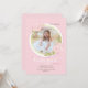 Une invitation rose pâle avec une fenêtre photo circulaire ornée de fleurs de liseron rose.