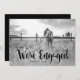 Ces annonces élégantes de partie de fiançailles comportent votre propre photo personnelle avec un recouvrement noir lunatique. Votre information de partie de fiançailles va sur le dos.