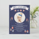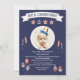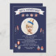 Célébrer l'anniversaire de votre enfant le 4 juillet ? C'est l'invitation parfaite pour commencer la fête. Le arrière - plan bleu est doté d'une fenêtre circulaire de photos, d'un "fêtons ça !" bannières, étoiles et rayures, feux d'artifice, ballons et cupcakes.