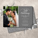 Personnalisez avec votre photo de mariage préférée et les détails de votre célébration spéciale de vos 25 ans de mariage argenté dans une typographie blanche chic sur un fond argenté. Le verso présente des confettis de coeurs d'amour argentés. Conçu par Thisisnotme