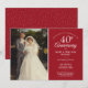 Personnalisez avec votre photo de mariage préférée et les détails de votre célébration spéciale du 40e anniversaire de mariage de rubis dans une typographie blanche chic sur fond rouge rubis. Le verso présente des confettis en forme de cœurs d'amour rubis. Conçu par Thisisnotme©