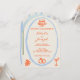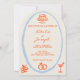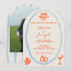 Cette invitation de mariage est parfaite pour votre mariage si vous cherchez une invitation arquée élégante unique et facile à éditer. Une invitation de mariage avec un modèle arqué élégant, unique, simple, minimaliste, bleu et orange. Comme vous le voyez, elle présente un fond classique crémeux uni. Et les prénoms de la mariée et du marié écrits à la main en orange vif et les informations en script. Et un cadre bleu ciel peint à la main et un gâteau orange, des alliances, des anneaux et des verres. Et une photo arquée personnalisable au verso. Abordable et c'est également une invitation électronique numérique si vous souhaitez l'envoyer par SMS ou par e-mail. Toutes les informations sont personnalisables en cliquant sur le bouton Personnaliser. Alors saisissez-la et faites-en vôtre pour que vos invités soient engagés et excités.