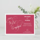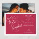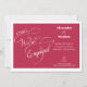 Une invitation de fiançailles minimaliste élégante avec calligraphie manuscrite, noms personnalisés et monogramme de couleur Viva Magenta.