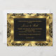 Carton d'invitation d'anniversaire doré et noir. Élégant nœud de bijou noir et design en damas doré. Ils ne contiennent PAS de vrais bijoux ou nœuds !