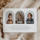 Un design moderne et bohème, parfait pour 3 amis ou frères et sœurs qui organisent une fête conjointe ! Vous pouvez ajouter vos propres photos (assurez-vous qu'elles sont recadrées dans Zazzle puis que les photos sont déplacées en bas des calques, de sorte qu'elles soient derrière les formes arquées) et modifier le nom dans chaque arche. Vous pouvez également modifier tout le texte de détails le long du bas.