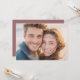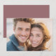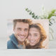 Cette invitation de mariage présente un design chaleureux et intime avec un gros plan sur deux personnes souriantes sur un fond balnéaire. La mise en page est centrée et resserrée, ce qui accentue le lien entre les sujets. La palette de couleurs comprend des tons doux et naturels qui renforcent l'ambiance joyeuse et affectueuse. Avec son style candide et sa représentation réaliste, cette invitation capture l'essence d'une célébration joyeuse au bord de la mer.