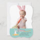 Une invitation mignonne parfaite pour une célébration d'anniversaire à Pâques mettant en vedette un lapin blanc sortant d'un œuf de Pâques décoré. Le fond sarcelle présente un motif de petits cœurs. (<a href='https://www.freepik.com/free-vector/set-of-cute-easter-cards_766176.htm'>Conçu par Freepik</a>). <br/><br/>La carte est facile à personnaliser avec votre texte, police, couleur de police et choix parmi six types de papier.<br/><br/>Pas exactement ce que vous cherchez ? Tous nos produits peuvent être conçus sur mesure pour répondre à vos besoins sans frais supplémentaires.<br/><br/>Contactez-nous simplement à heartfelthelper@gmail.com<br/><br/>Produits coordonnés disponibles :