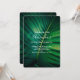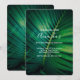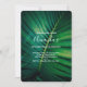 Une invitation d'anniversaire avec une photo rapprochée d'une feuille tropicale verte affichant des frondes de palmier vibrantes.