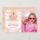 Célébrez votre petite princesse et son grand jour avec cette invitation d'anniversaire féerique au château rose ! Il s'agit d'un modèle moderne d'invitation d'anniversaire pour enfants facile à personnaliser avec des photos. Caractéristiques éléments de conte de fées dans un schéma de couleur rose et or.