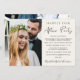 Faire part élégant et stylé de mariage / petit mariage en crème et invitation à la réception de mariage. Le devant présente votre photo et "Fête pour toujours heureux" dans un mélange de typographie simple et d'un script moderne. Personnalisez votre annonce et votre invitation, et ajoutez vos noms dans un script ressemblant à une signature. Au dos, ajoutez une autre photo, vos prénoms et la date du mariage ou de l'événement.
