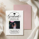 Invitation à une fête de fin d'études avec un script moderne « Graduate » accompagné d'une icône de chapeau et d'une disposition de photo. Design élégant et minimal pour un look soigné. Carte de fond rose poussiéreuse pour un accent doux et tendance. Personnalisez le nom et tous les détails de l'événement.