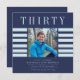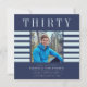 Design moderne minimaliste coloré avec un modèle photo où vous pouvez ajouter votre belle photo, avec arrière - plan bleu et bandes blanches modernes simple texte moderne dire trente en rouge. si vous avez des problèmes avec ce design ou voulez qu'il dans d'autres couleurs, s'il vous plaît contactez-moi janine à travers mon zazzle stores message bouton à willow spring studio.