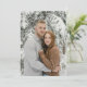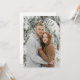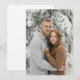 Cette invitation de mariage présente une scène hivernale cosy avec un couple s'enlaçant dans une forêt enneigée. Le design met en valeur un style photographique naturaliste, capturant la chaleur et l'intimité du moment sur fond d'épicéas couverts de neige. La palette de couleurs est dominée par des blancs et des gris froids, complétée par des tons terreux provenant des vêtements des sujets, créant une atmosphère sereine et affectueuse. Parfaite pour les couples qui aiment la beauté de la nature et la tranquillité de l'hiver, cette invitation donne le ton à une célébration sincère.