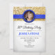 30e anniversaire Invitation avec votre photo Design élégant avec de l'or de parties scintillant fausse, blanc et une pointe de bleu royal. Parfait pour une fête du trentième anniversaire féminin. Il peut être customisé pour n'importe quel âge !