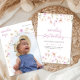 Marquez le jalon de la première année de votre bébé avec notre Invitation de premier anniversaire Fleur sauvage, ornée de fleurs sauvages mauve et rose de couleur d'eau. Au fond, une charmante arche encadrée de photo à la bordure florale vous attend pour vous permettre de mettre en valeur l'un des précieux moments de votre petit. Entièrement personnalisable, cette invitation promet de créer un souvenir précieux de cette occasion spéciale.
