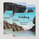 Faire-part de mariage avec une photo pittoresque montrant la côte tropicale des Bermudes. De gros rochers déchiquetés contrastent avec la mer turquoise et éclatante.