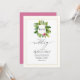 Un superbe faire-part de mariage avec une couronne de verdure tropicale aux accents roses vibrants et un monogramme personnalisable. L’envers comprend de l’espace pour la photo du couple et un code QR pour partager les détails du mariage sans effort. Parfait pour les thèmes de mariage tropicaux ou de destination.