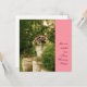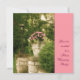 Une autre de nos propres photos, celle-ci est l'entrée d'escalier d'une grande maison avec une lampe de jardin d'un côté et un grand plante en pots de l'autre. Un mur en pierre et une urne en plâtre donnent à cette image une opulence accrue. Nous avons laissé la barre latérale rose vierge afin que vous puissiez personnaliser cette magnifique invitation comme vous le jugez bon.