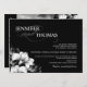 Belles, audacieuses et dynamiques invitations contemporaines à des mariages floraux avec photo en option. Des fleurs noires et blanches accrocheuses aux yeux avec une élégante typographie moderne de style letterpress et un script rétro vintage de swash rejoignant les noms des mariées et des mariées. Parfait pour les mariages de la soirée et de la fête aux chandelles, la cérémonie traditionnelle de l'église ou les mariages décontractés dans les jardins urbains en toute saison - printemps, été, automne, automne et hiver. Ce style ne manquera pas de plaire à la mariée branchée, mais un éclat de style sophistiqué fait une déclaration classe pour les couples modernes — l'aspect luxe à un prix abordable et bon marché pour les mariées frugales à un prix abordable. Customisez-le pour modifier les couleurs et les styles de arrière - plan ou de police. Veuillez nous contacter si vous souhaitez que ce design soit modifié pour correspondre à votre thème de couleur de fête de mariage. Ce modèle facile à utiliser peut également être personnalisé pour toute occasion spéciale. N'hésitez pas à nous contacter si vous avez besoin d'aide pour créer vos propres invitations uniques. Autres tailles, styles, couleurs et accessoires disponibles sur demande.