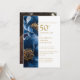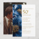 Invitation Photo élégant bleu or floral 50e anniversaire