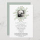 Ajoutez votre propre photo.Elégante Célébration de la vie Funeral Memorial Watercolor Eucalyptus design. Modèle a été configuré pour vous permettre de modifier et de customiser. Si vous souhaitez modifier la couleur ou la police, cliquez sur l'onglet Personnaliser à la fin du modèle. Des articles de papeterie et de réveil correspondants sont en magasin.