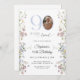 Elégant Wilfdlower 90e anniversaire Invitation avec photo | 90 Years Loved Célébrez en style avec cette magnifique invitation de 90e anniversaire de design mettant en vedette des fleurs sauvages d'aquarelle délicats. Ce design féminin élégant encadre votre photo personnalisée, ajoutant une touche spéciale à votre célébration de jalon. Parfait pour les fêtes de jardin, les brunchs ou les soirées sophistiquées, cet invitation personnalisable donne le ton d'un événement mémorable. Modifiez facilement le texte pour inclure votre nom, les détails de votre fête, et plus encore - faites-le le vôtre de façon unique !