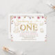 Photo fleur sauvage Un lapin 1er Anniversaire Invitation Sweet est en train de tourner une invitation de premier anniversaire avec un lapin blanc et des oiseaux, fausse tête or et divers fleurs sauvages. L'invitation à l'anniversaire de cette fille comporte aussi une photo sur le dos et un faux texte en or. Idéal pour un fleur sauvage et lapin combiné fête de premier anniversaire.