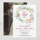 Avec une délicate guirlande de fleurs de greenery à l'aquarelle, cette invitation chic et botanique de renouvellement de vœux de 40e anniversaire de mariage peut être personnalisée avec vos informations spéciales d'anniversaire. Le verso présente votre photo spéciale. Conçue par Thisisnotme©