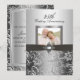 Invitation d'anniversaire de mariage. Élégant tourbillon floral argenté et noeud avec bijou. Exclusif Zazzle. Personnalisez avec vos propres détails. NOTEZ que toutes les images sont plates ! Elles ne contiennent PAS de vrais noeuds ou bijoux !!