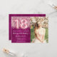 Photo 18th Birthday Invitation Girly Magenta and Pink Parties scintillant 18th anniversaire invitation pour une fille de 18 ans avec écriture de script moderne et des ballons de papier amusant.