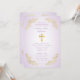 Baptême violet invitation avec faux parchemin floral doré et détails croisés. Rendre cette étape mémorable en ajoutant un portrait dans l'ouverture de la photo incluse sur le côté arrière. La superposition de texte à l'arrière peut être supprimée et remplacée par votre libellé personnalisé. Commandez en papier brillant de perle pour obtenir les résultats les plus somptueux.