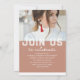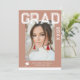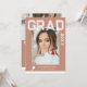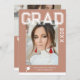 Photo Graduation Party Elégant Modern Script Invitations comprennent votre photo préférée avec le texte blanc simple "Grad (année)" et votre nom et les détails de graduation personnalisés sur le devant sur un arrière - plan brun doux. Au verso, ajoutez une image supplémentaire avec les informations sur l'invitation de graduation ci-dessous. Personnalisez en modifiant le texte dans les zones de texte fournies. Créé par ©Evco Studio www.zazzle.com/store/evcostudio