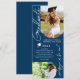 Photo Graduation Party Modern Elegant Script Invitations présente deux de vos photos préférées avec le texte blanc "Graduate" dans élégante typographie de script de calligraphie sur un arrière - plan bleu. Ajoutez ci-dessous les informations sur votre invitation à passer un diplôme. Personnalisez en modifiant le texte dans les zones de texte fournies. Envoyer comme un téléchargement numérique instantané, comme une invitation physique par courrier ou les deux. Créé par ©Evco Studio www.zazzle.com/store/evcostudio