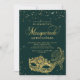 Invitation Photo Green Gold Glitter Masquerade Quinceañera