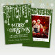 Photo Green et White String Lights Carte de Noël avec un joli plaisir fantaisiste et un accueil festif.