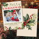 Invitation Photo Holly Pine Red Berries Beige Christmas Card