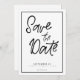 Un beau minimaliste moderne enregistrer la carte de date avec "enregistrer la date" dans un noir frais et décontracté écriture manuscrite de style script. Conçu pour accommoder votre photo fiançailles à fond saigné vertical ou portrait préférée. Cette carte chic présente un texte moderne en noir de votre date de mariage et de votre emplacement de mariage. Les cartes retournent à votre photo et vos noms.