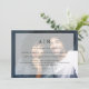 Ces invitations de mariage modernes et minimalistes sont dotées de votre propre photo qui couvre entièrement le arrière - plan. Une simple superposition blanche contient tout votre libellé faire-part de mariage ainsi que vos initiales, et votre monogramme apparaît également sur le dos.