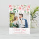 carte de remerciements photo mariage avec design floral pêche rose, jolies fleurs avec script élégant. Nom, date et information de la Personnaliser.