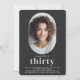 Simple, minimaliste et si élégante, cette invitation de fête d'anniversaire célèbre quelqu'un qui a 30 ans. Le design simple et moderne en noir plat avec un arrière - plan blanc cassé met l'accent sur l'invité d'honneur alors qu'ils se préparent à célébrer cet important anniversaire d'étape. Le cadre ovale unique a un modèle photo à personnaliser avec une photo verticale. Personnalisez le modèle de texte avec les détails du parti et vous êtes tous définis. Cette invitation est disponible en format numérique à la fois imprimé et instantané.