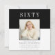 Design moderne minimaliste colorblock avec un modèle photo où vous pouvez ajouter votre belle photo, avec le noir sur le dessus et le fond blanc colorway avec un texte simple moderne disant soixante en blanc sur un arrière - plan noir au dessus aussi tous les détails dans une police moderne simple en noir au bas. si vous avez des problèmes avec ce design ou si vous voulez dans d'autres couleurs, s'il vous plaît contactez-moi janine à travers mon zazzle magasins message bouton à willow spring studio.